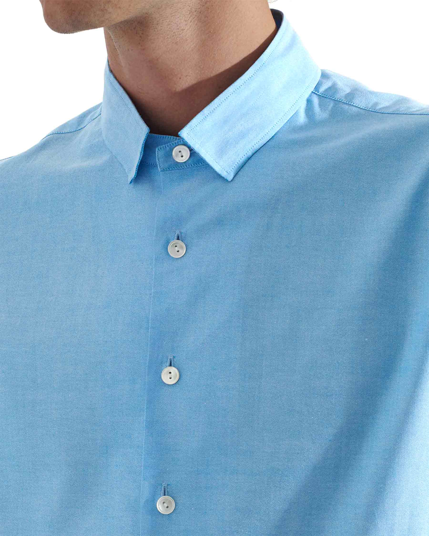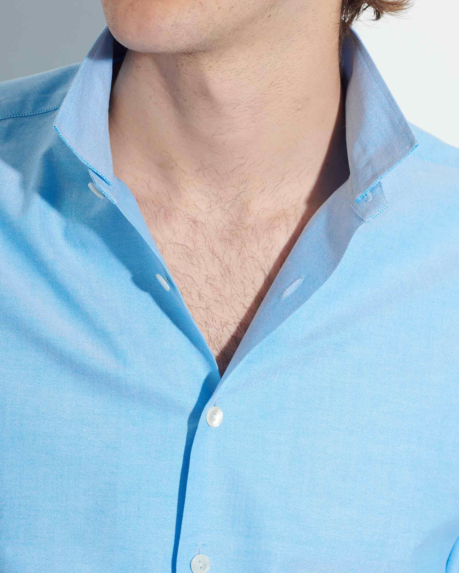 Our fabric stands out with its incredible sky blue hue, vibrant yet subtly distinct from the typical pale shades found in many oxford shirts. It's the sibling of our mint green fabric.
